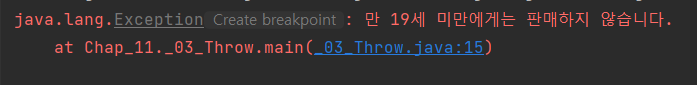 throw new Exception("๋ง 19์ธ ๋ฏธ๋ง์๊ฒ๋ ํ๋งคํ์ง ์์ต๋๋ค.");