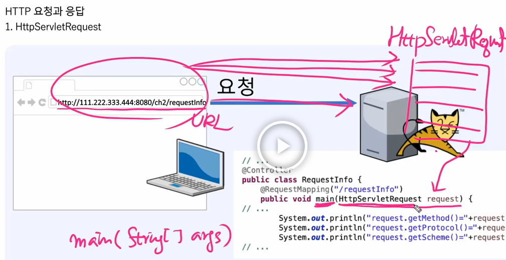 //main method์ ์ธ์๋ก request๋ ๋ฃ์ด์ค ์ด์