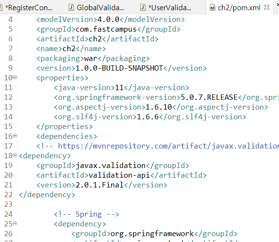 <beans:bean id = "globalValidator" class ="com.fastcampus.ch2.GlobalValidator"/>