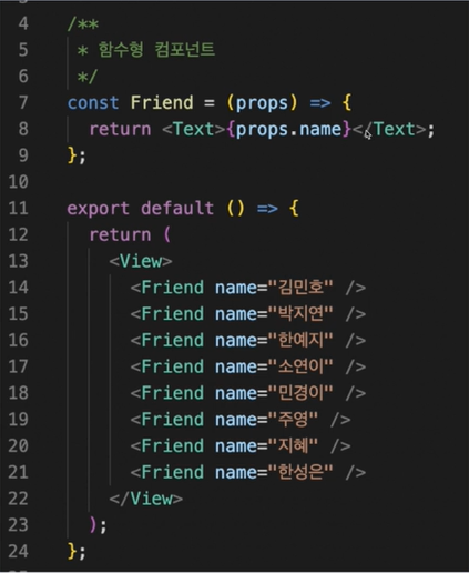 ๋ณ์๋ค์ ์ต๋ช ํจ์๋ฅผ ๋ฐ์ดํฐ๋ก ๊ฐ์ง๊ณ ์๊ณ , ์ด ์ต๋ช ํจ์์๋ props๋ผ๋ ๊ฐ์ฒด ์ธ์๋ฅผ ๋ฐ์ ์ธ ์ ์๋ค.