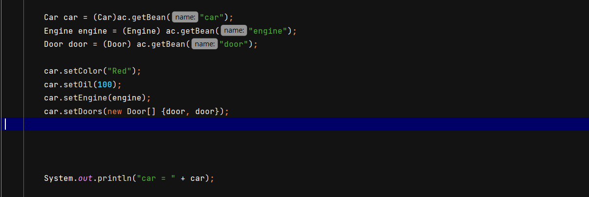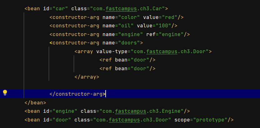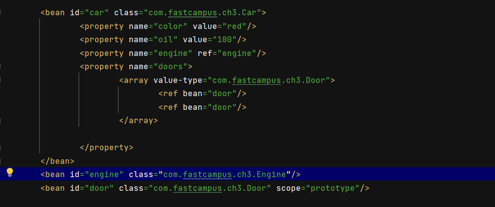 ๊ทธ๋ฌ๋ฉด Car ๊ฐ์ฒด ๋ด์ iv์ธ engine๊ณผ door ์ ๊ฐ์ type์ ๊ฐ์ฒด ์ ๋ณด๊ฐ Beans์ ๋ฑ๋ก๋์ด ์๋์ง ๋ณด๊ณ ์๋ค๋ฉด, ๊ฐ์ฒด์ ์ฅ์์ ๊ทธ ์ ๋ณด๊ฐ ๊ตฌํ๋ ํด๋น ๊ฐ์ฒด๋ค๊ณผ iv๋ฅผ ์ฐ๊ฒฐ์์ผ์ค.
