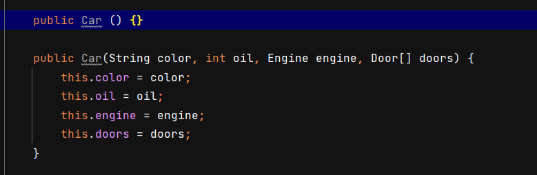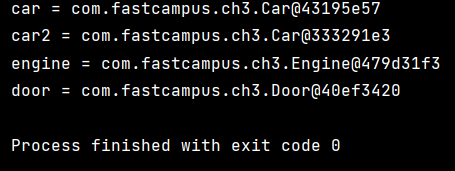 ํด๋น ๋ด์ฉ๋ค์ engine,door ๋ ๊ฐ์ฒด ์ ์ธํ๊ณ ๊ฐ์ฒด ์ ์ฅ์์ ์ด๋ฏธ ์๋ Engine๊ณผ Door์ ๊ฐ์ฒด๋ฅผ ์ฐ๊ฒฐ ์์ผ์ฃผ๋ ๋ด์ฉ์ด๋ค.