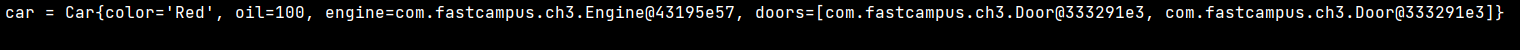 ์ฌ๊ธฐ์๋ Car์ iv ๊ฐ์ผ๋ก engine๊ณผ doors๋ฅผ ๋ฃ์ด์ฃผ์ง ์์๋ค.
