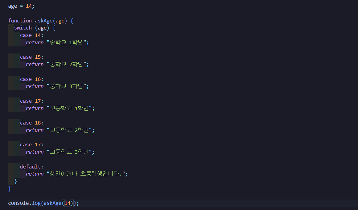 age๋ฅผ 16์ผ๋ก ๋ฐ๊พผ๋ค๋ฉด, case 16: ์๋ ๋ชจ๋ ์ฝ๋๊ฐ ์คํ๋๋ค.