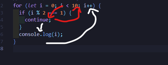 if ์กฐ๊ฑด ๋ง์กฑํด์ continue ๋ง๋๋ฉด ๋ฐ์ ๋ฌธ์ฅ๋ค ์คํํ์ง ์๊ณ , ๋ฐ๋ก loop๋ฌธ์ผ๋ก ๋์ด๊ฐ.