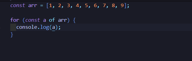 const a of arr์ a๋ ๋ณ์์ arr ๋ฐฐ์ด์ ์์๋ฅผ ์ฐจ๋ก๋๋ก ํ๋์ฉ ๋ฃ๊ฒ ๋ค๋ ๋ง์ด๋ค.