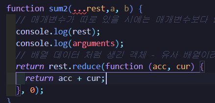 ์ฌ๊ธฐ๋ ๊ตฌ์กฐ๋ถํด ํ ๋น๊ณผ ์ฐ๊ด๋๋ ๋ด์ฉ์ธ๋ฐ ...rest "์ ๊ฐ ์ฐ์ฐ์"๋ฅผ ์ฌ์ฉํ๋ค.