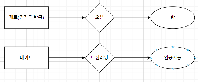 ๋ง์ฝ์ ๋ฐ์ดํฐ x2๋ฅผ ํ๋ ํ๋ก๊ทธ๋จ์ ๋ง๋ค๊ณ ์ ํ์ ๋, ๊ฐ๋ฐ์๊ฐ ๋ฐ์ดํฐ๋ฅผ ์ ๋ ฅ๋ฐ์ผ๋ฉด ๊ฑฐ๊ธฐ์ ๊ณฑํ๊ธฐ 2๋ฅผ ํ๋ ํ๋ก๊ทธ๋จ๊ณผ ๋ฐ์ดํฐ (2,4,6,8,10)์ ๊ธฐ๊ณ์ ๋ฃ๋๋ค. ๊ทธ๋ฌ๋ฉด ๊ธฐ๊ณ๋ ํ๋ก๊ทธ๋จ์ ์คํํ์ฌ ๊ฒฐ๊ณผ๊ฐ์ธ 4,8,12,16,20์ ๋ฐํํ๋ค.