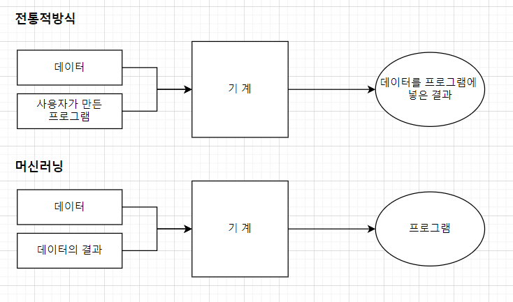 ** ๋จธ์ ๋ฌ๋๊ณผ ํ๋ก๊ทธ๋จ์ ๋ง๋๋ ์ ํต์ ๋ฐฉ์์ ์ฐจ์ด์