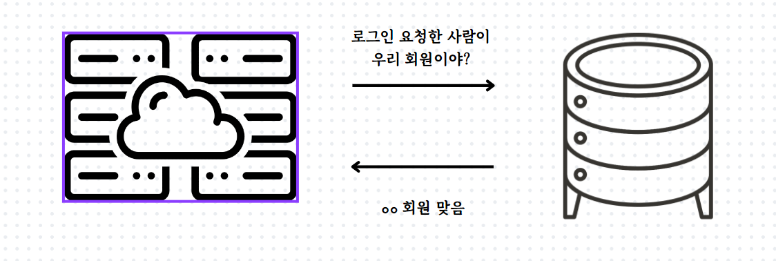 โ Server๊ฐ DB๋ฅผ ํตํด ํด๋น ID/PW๋ฅผ ๊ฐ์ง ํ์์ด ์๋์ง ํ์ธํ๋ค.