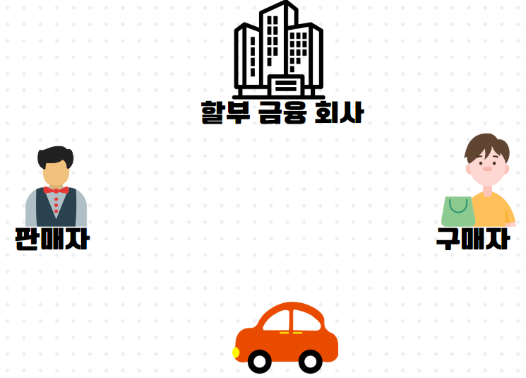 λ€μκ³Ό κ°μ΄ κ³ κ°μ λ¬Όν(μ: μλμ°¨), νλ§€μ, ꡬ맀μκ° μμ μ, ꡬ맀μκ° ν΄λΉ λ¬Όνμ λκΈμ ν λ²μ λ©λΆνκΈ° μ΄λ €μ΄ κ²½μ°, ꡬ맀μκ° ν λΆ κΈμ΅νμ¬μ ν λΆκΈμ΅νκ°μ½μ μ΄λ κ³μ½μ λ§ΊμΌλ©΄, ν λΆκΈμ΅νμ¬κ° ꡬ맀μμ μ μ©λμ λ§κ² λ¬Όν λκΈμ νλ§€μμκ² μ§κΈνκ³ , ꡬ맀μλ ν΄λΉ μ리κΈμ λΆν νμ¬ ν λΆ κΈμ΅ νμ¬μ μννλ νμμ μλΉμ€