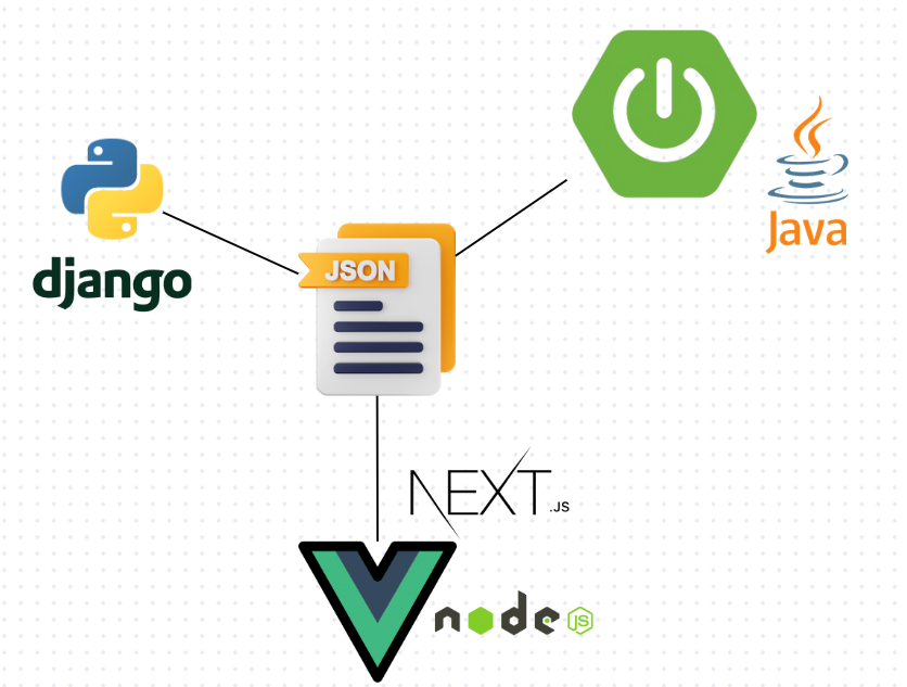 ํ๋ก์ ํธ๋ฅผ ์งํํ๋ฉด ๋น์ฐํ๊ฒ๋ client์ server์ ์ธ์ด๊ฐ ๋ค๋ฅผ ์ ์๋ค. ์ด๋ ๋ ๊ฐ์ ์ํต์ ์ํํ๊ฒ ํ๊ธฐ ์ํด์๋ JSON์ด ํ์์ด๋ค. ๋ํ ์๋น์ค๊ฐ ๋ฐฉ๋ํด์ ธ์ ์ฌ๋ฌ๊ฐ์ ์๋ฒ๋ฅผ ๋๊ณ ์๊ณ , ๊ทธ ์๋ฒ๊ฐ์ ๊ตฌํ ์ธ์ด๊ฐ ๋ค๋ฅธ ๊ฒฝ์ฐ, Open API ๋ฐ์ดํฐ๋ฅผ ํ์ฉํด์ผ ํ๋ ๊ฒฝ์ฐ ๋ฑ, ๋ค๋ฅธ ์ธ์ด๊ฐ์ ์ํต์ ์ํด์๋ JSON์ด ํ์์ ์ด๋ค. ๋ง์น ๋ชจ๋ ๋ค๋ฅธ ์ธ์ด๋ฅผ ์ฐ์ง๋ง UN ํ์์ฅ์ ๊ฐ๋ฉด ๋ชจ๋๊ฐ ์์ด๋ฅผ ์ฐ๋ ๊ฒ๊ณผ ๊ฐ์ ์ด์น์ด๋ค.