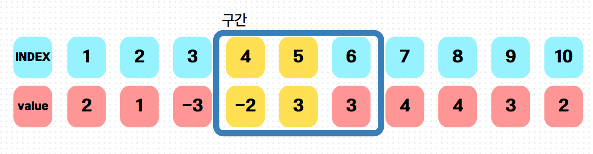 1์ฐจ์ ๋ฐฐ์ด์์ ํน์ ๊ตฌ๊ฐ ๋ด์ ํฉ์ ์ํ๋ ๋ฌธ์ ์์ ํ์ฉ.