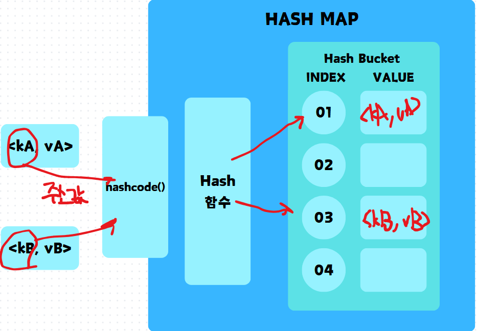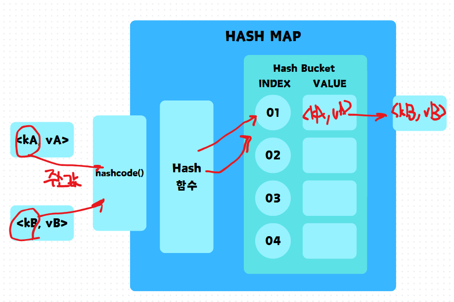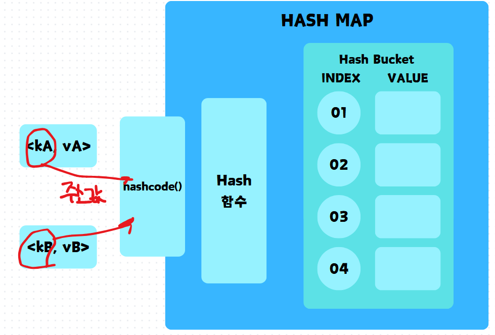 HashMap์ ํฌ๊ฒ HASH ํจ์์ Hash Bucket์ผ๋ก ์ด๋ฃจ์ด์ ธ ์๋ค.