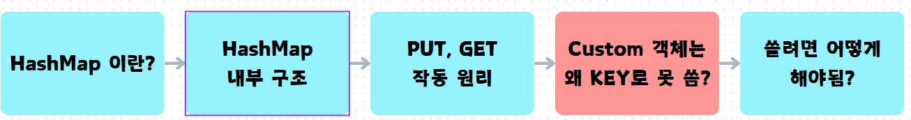 (HashMAP์ KEY, VALUE๋ ์ฐธ์กฐ ์๋ฃํ๋ง ์ธ ์ ์๊ธฐ ๋๋ฌธ์, ์ฃผ์๊ฐ์ด ๋ฌด์กฐ๊ฑด ์์)