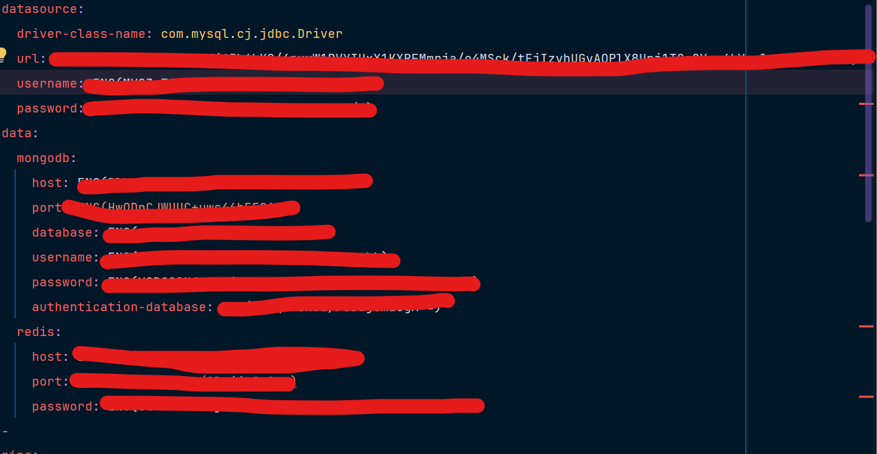 - 2๏ธโฃ ์๋ฒ ์คํ ์ ์ค์ ํ์ผ์์ 'ENC('๋ก ์์๋๋ ๋ฌธ์์ด์ ์ฐพ๋๋ค.