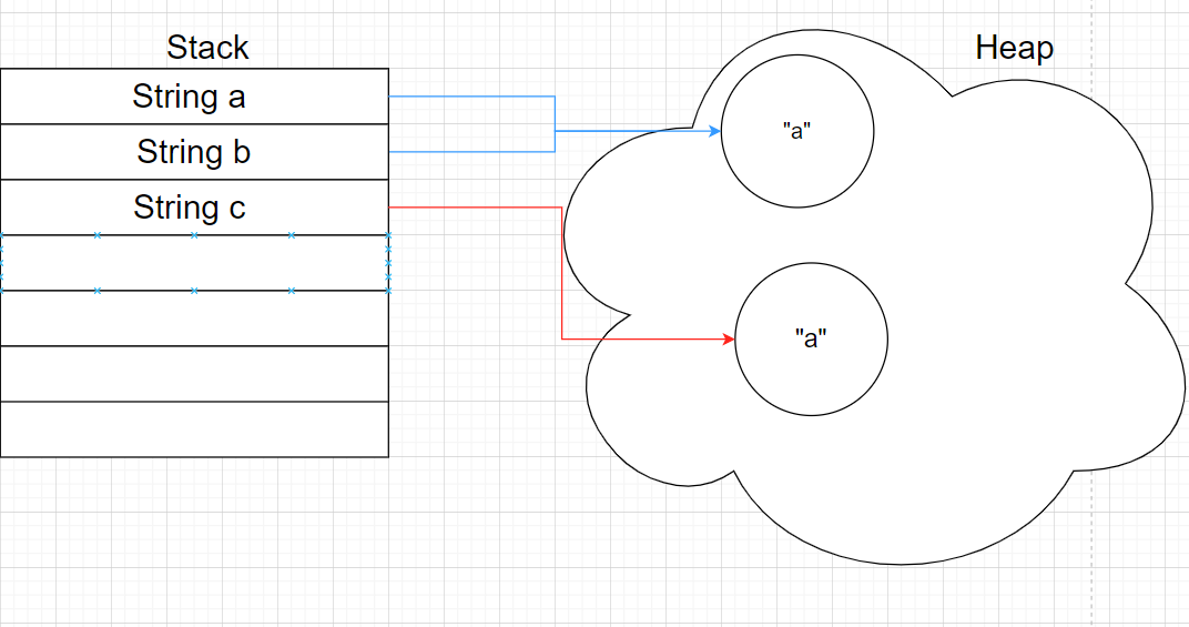 == ์ String์ ์ฃผ์๊ฐ ๊ฐ๋ฅดํค๋ ๋ด์ฉ๋ฌผ๋ค์ ๋น๊ตํ๋ ๊ฒ์ด ์๋๋ผ, ๋จ์ํ๊ฒ Stack ์ ๊ฐ ๋ณ์๊ฐ ์ ์ฅํ๋ ์ฃผ์๊ฐ์ ์๋ก ๋น๊ตํ๋ค. a์ b์ ๊ฒฝ์ฐ ๊ฐ๋ฅดํค๋ ์ฃผ์๊ฐ ๋ง์ ๊ฐ์ผ๋ฏ๋ก, ๋์ผํ๋ค๊ณ ๋์ค์ง๋ง, c๋ ์๋ก ๋์ ํ ๋น์ ๋ฐ์๊ธฐ ๋๋ฌธ์ a,b์๋ ์ฃผ์๊ฐ์ด ๋ค๋ฅด๋ค.